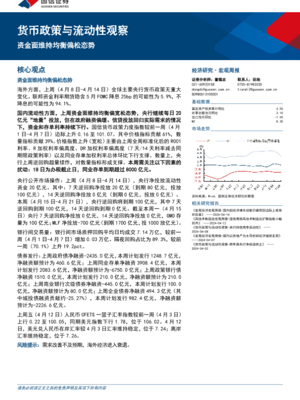 【国信证券】【20240417】货币政策与流动性观察:资金面维持均衡偏松态势-14页 行业研究