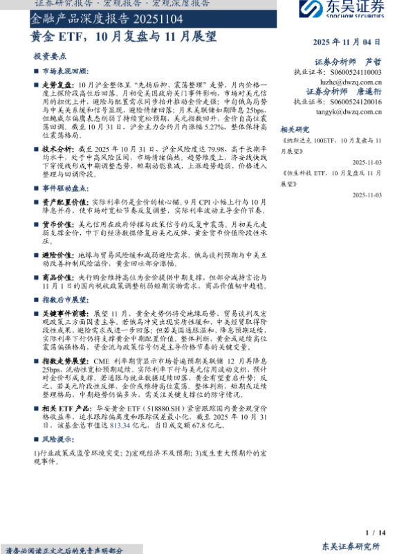 【东吴证券】【202511】黄金 ETF,10月复盘与 11月展望-14页 证券期货研究报告