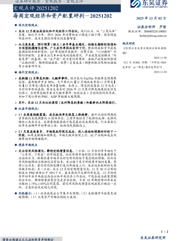 【东吴证券】【202512】每周宏观经济和资产配置研判—20251202-2页 证券期货研究报告
