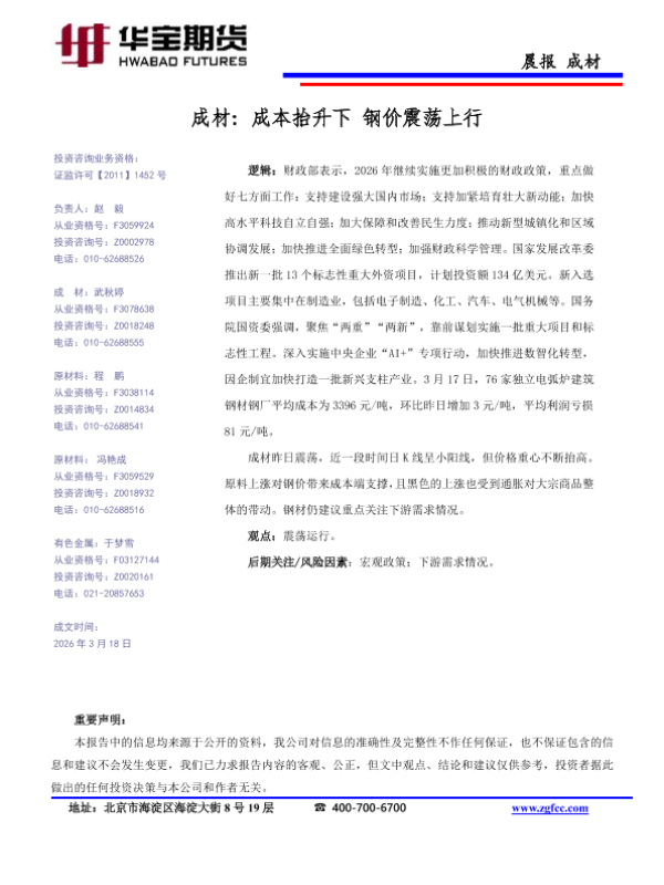 【华宝期货】【202603】成材_成本抬升下_钢价震荡上行-1页 证券期货研究报告