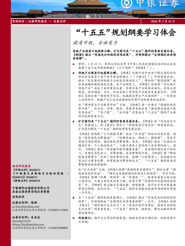 【中银证券】【202603】“十五五”规划纲要学习体会:提质升级,全面发力-3页 政策文件