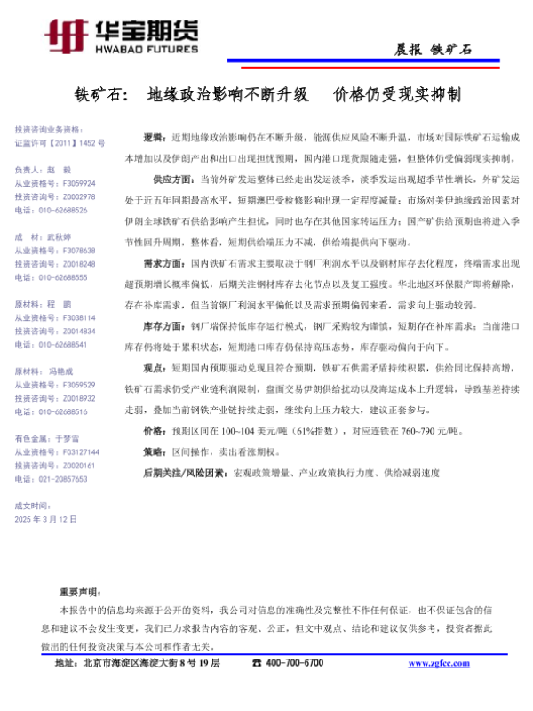 【华宝期货】【202503】铁矿石_地缘政治影响不断升级_价格仍受现实抑制-1页 证券期货研究报告