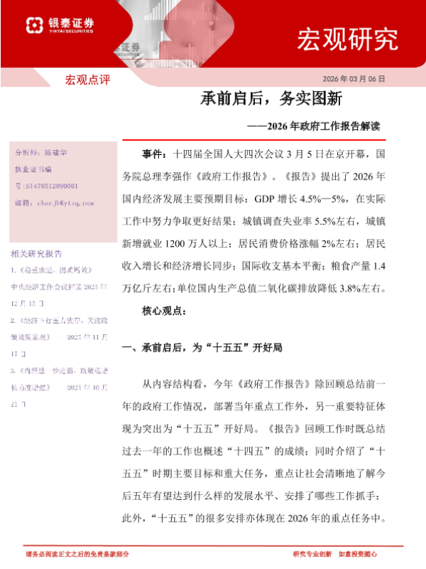 【银泰证券】【202603】2026年政府工作报告解读——承前启后,务实图新-5页 宏观策略
