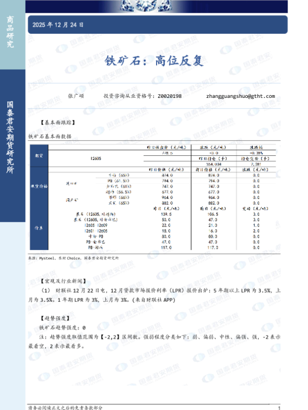 【国泰君安期货】【202512】铁矿石:高位反复-2页 证券期货研究报告