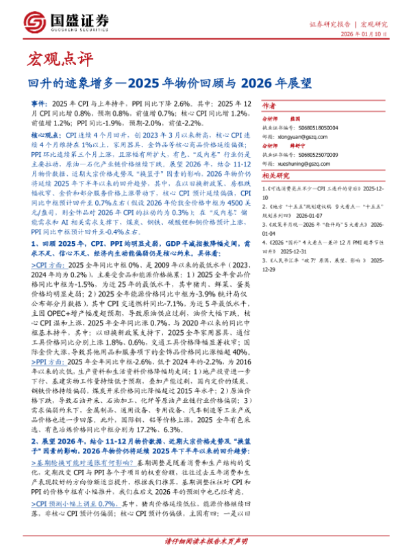 【国盛证券】【202601】回升的迹象增多—2025年物价回顾与 2026年展望-5页 证券期货研究报告