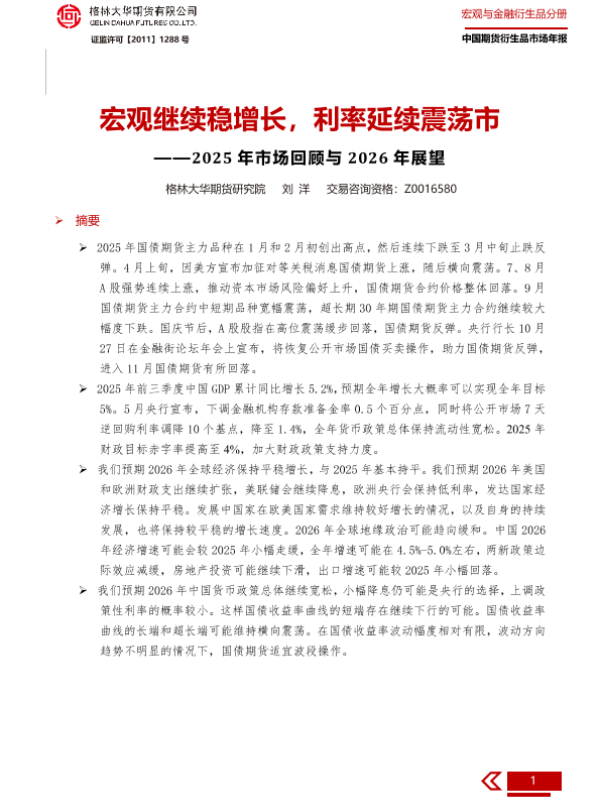 【格林大华期货研究院】【2025】宏观继续稳增长,利率延续震荡市——2025年市场回顾与2026年展望-25页 证券期货研究报告