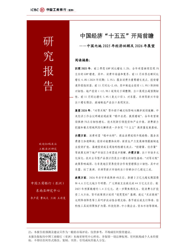 【中国工商银行(亚洲)东南亚研究中心】【2025】中国经济“十五五”开局前瞻——中国内地 2025年经济回顾及 2026年展望-23页 宏观策略