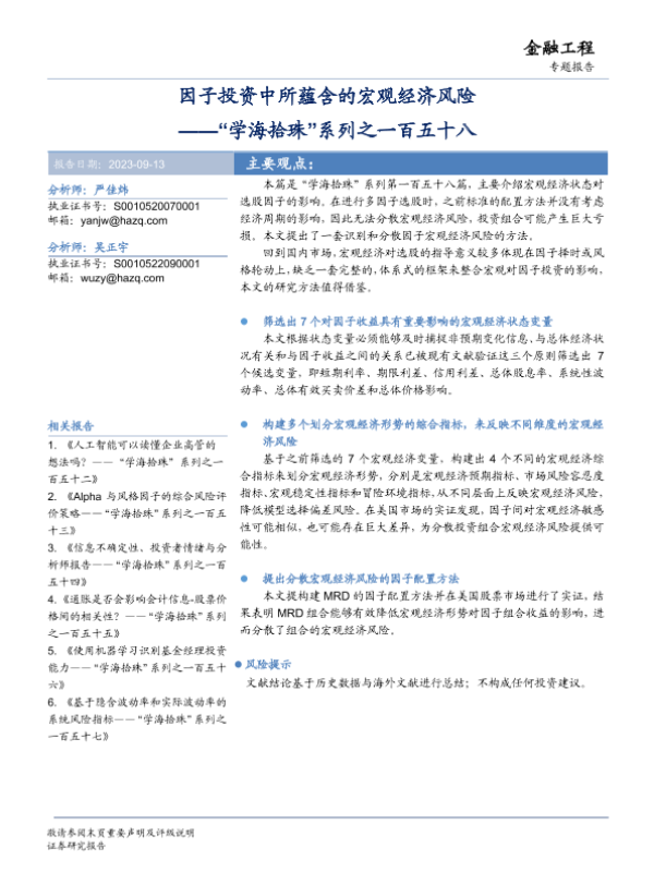 【华安证券】【20230913】因子投资中所蕴含的宏观经济风险-21页 行业研究