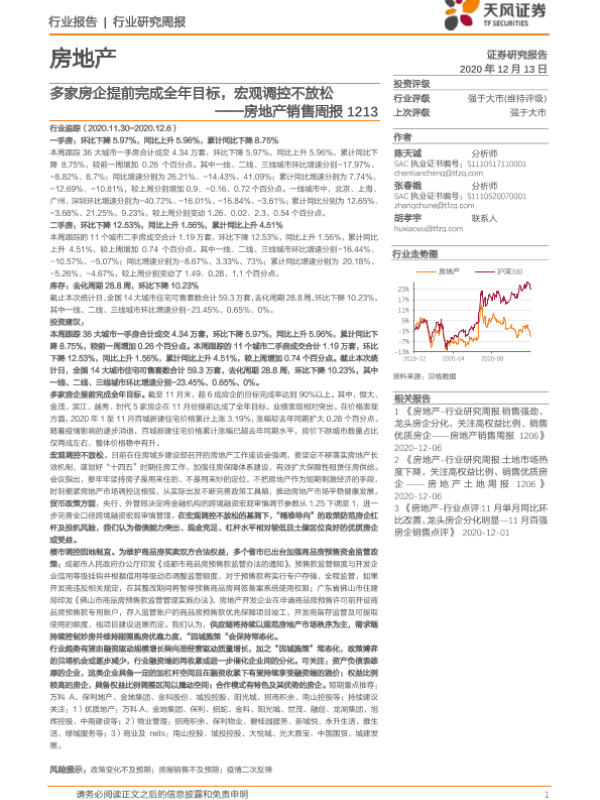 【天风证券】【20201213】多家房企提前完成全年目标,宏观调控不放松-16页 行业研究
