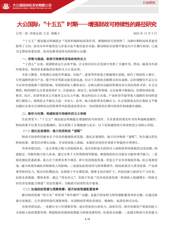 【大公国际】【202512】“十五五”时期——增强财政可持续性的路径研究-4页 行业研究