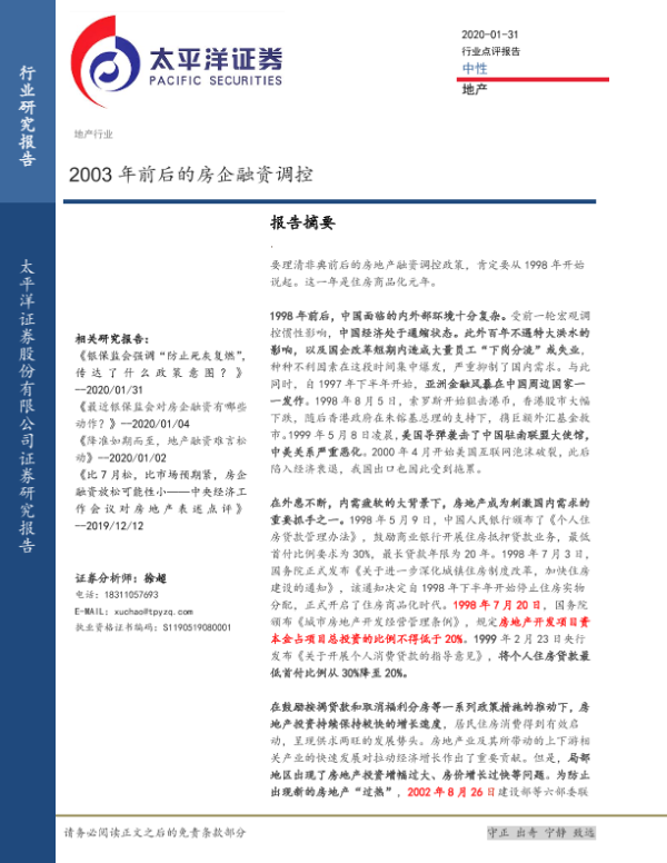 【太平洋证券】【20200131】2003年前后的房企融资调控-7页 行业研究