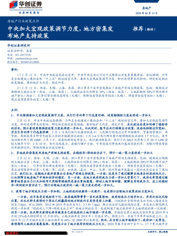 【华创证券】【20200213】房地产行业政策点评:中央加大宏观政策调节力度,地方密集发布地产支持政策-11页 行业研究