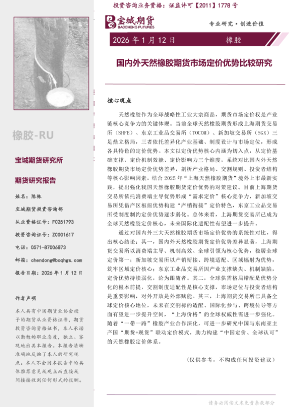【宝城期货研究所】【202601】国内外天然橡胶期货市场定价优势比较研究-12页 证券期货研究报告