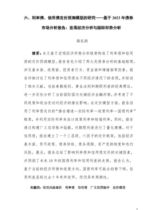 【陈礼清】【2023】利率债、信用债定价预测模型的研究——基于2023年债券市场分析报告:宏观经济分析与国际形势分析-43页 证券期货研究报告