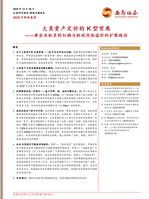 【西南证券】【2025】大类资产定价的 K型背离——黄金坐标系的切换与财政风险溢价的扩散路径-31页 证券期货研究报告