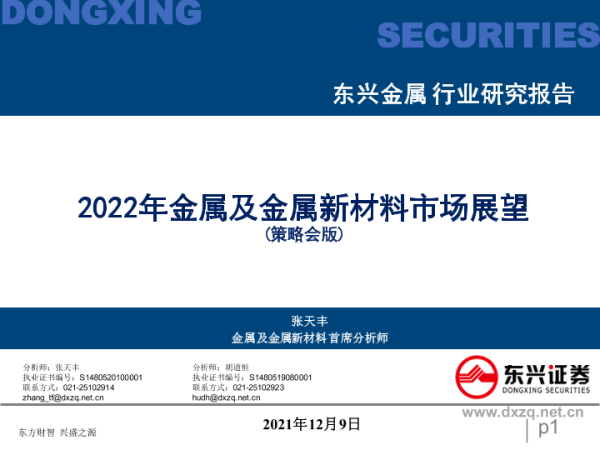 【东兴证券】【20211209】2022年金属及金属新材料市场展望(策略会版)-44页 行业研究