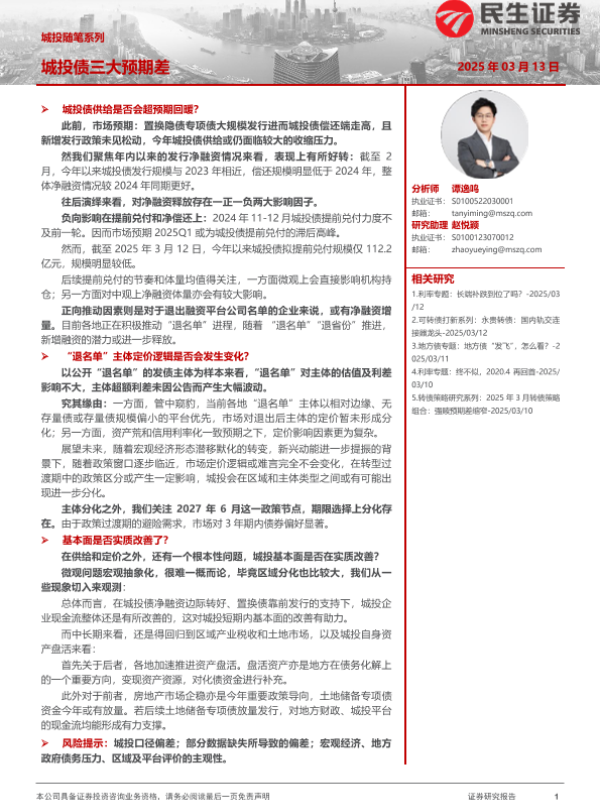 【民生证券】【20250319】城投随笔系列:城投债三大预期差-18页 行业研究