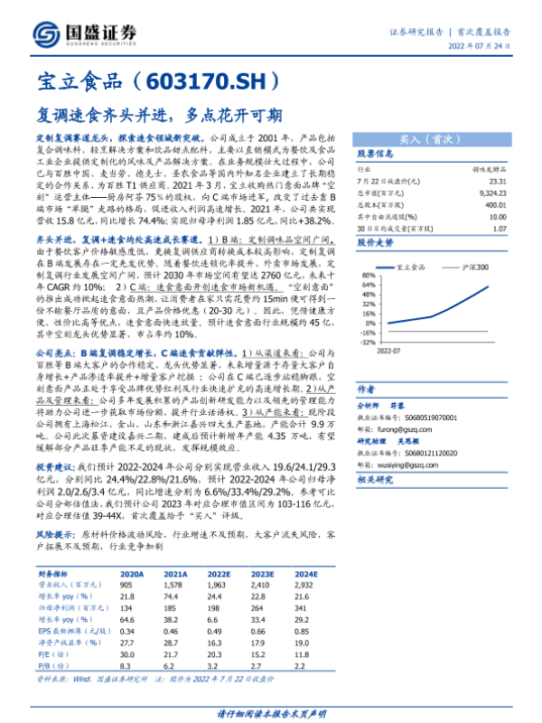 【国盛证券】【20220724】宝立食品(603170.SH)复调速食齐头并进,多点花开可期-35页 行业研究