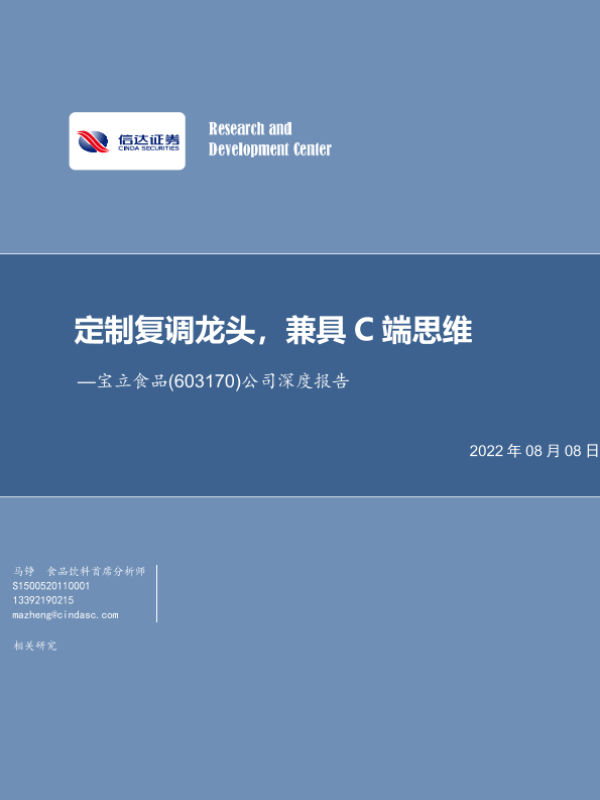 【信达证券】【20220808】20220808-信达证券-宝立食品-603170.SH-公司深度报告:定制复调龙头,兼具C端思维-29页 行业研究