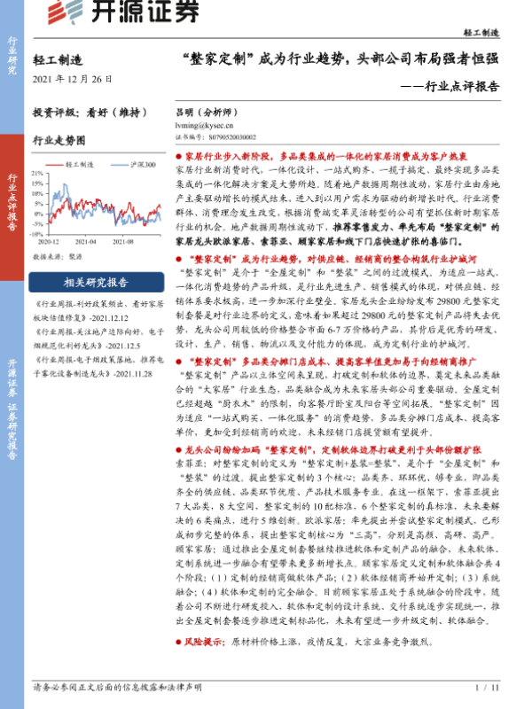 【开源证券】【20211226】20211226-开源证券-轻工制造行业点评报告:“整家定制”成为行业趋势,头部公司布局强者恒强-11页 行业研究