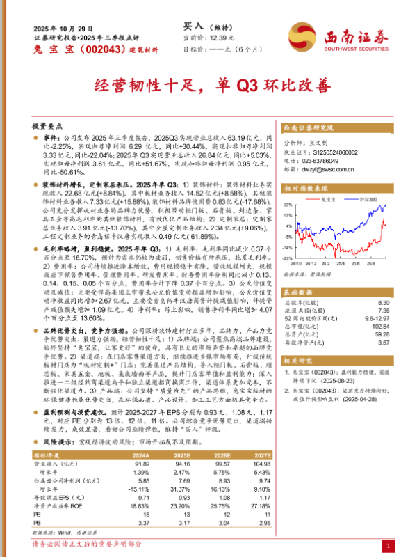 【西南证券】【202510】兔宝宝(002043):2025年三季报点评-5页 证券期货研究报告