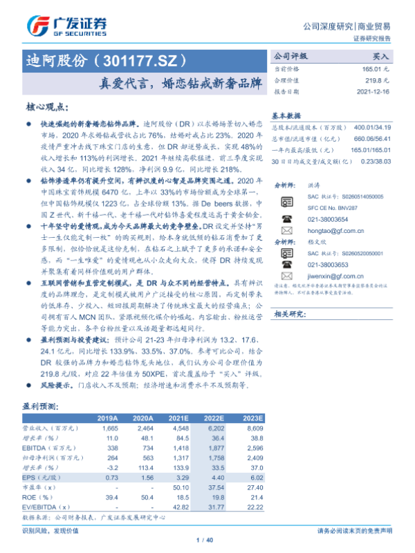 【广发证券】【20211216】真爱代言,婚恋钻戒新奢品牌-40页 行业研究