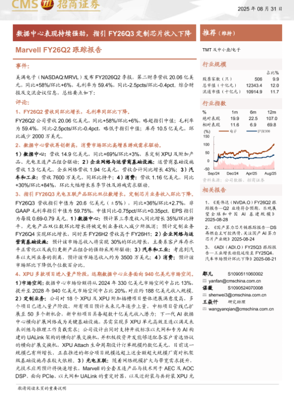 【海通证券】【202508】Marvell FY26Q2跟踪报告 TMT及中小盘/电子-13页 证券期货研究报告
