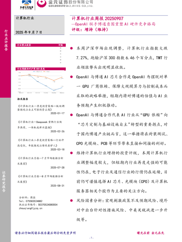 【金元证券】【202509】OpenA I联手博通意图重塑 A I硬件竞争格局-13页 证券期货研究报告