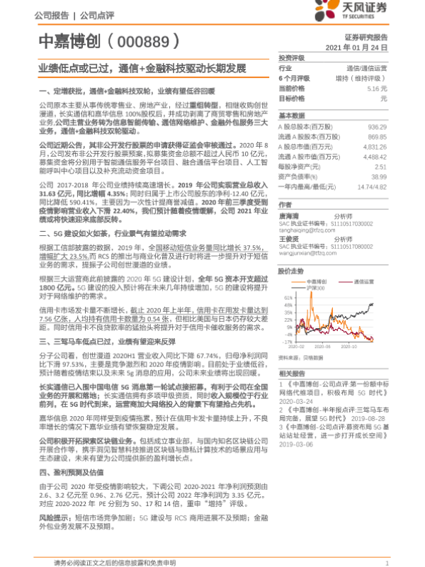 【天风证券】【20210124】中嘉博创-业绩低点或已过,通信+金融科技驱动长期发展-20页 行业研究