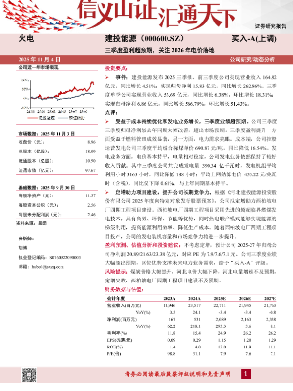 【山西证券】【202511】建投能源(000600.SZ) 买入-A(上调) 三季度盈利超预期,关注 2026年电价落地-5页 证券期货研究报告