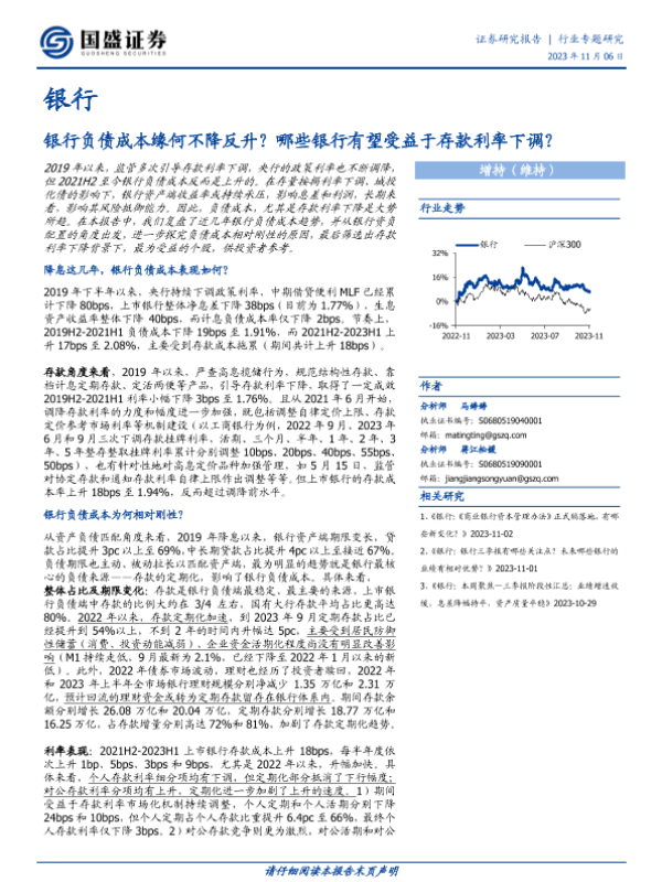 【国盛证券】【20231106】银行行业专题研究:银行负债成本缘何不降反升?哪些银行有望受益于存款利率下调?-15页 行业研究