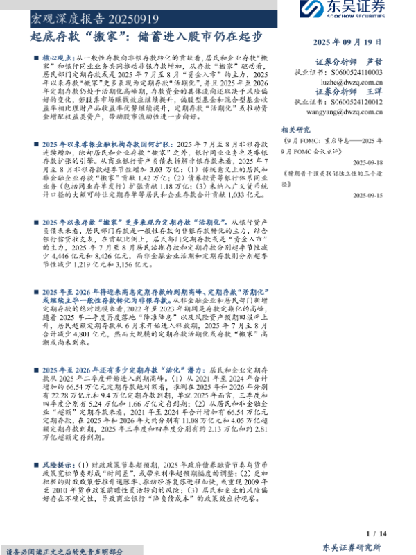 【东吴证券】【202509】起底存款“搬家”:储蓄进入股市仍在起步-14页 证券期货研究报告
