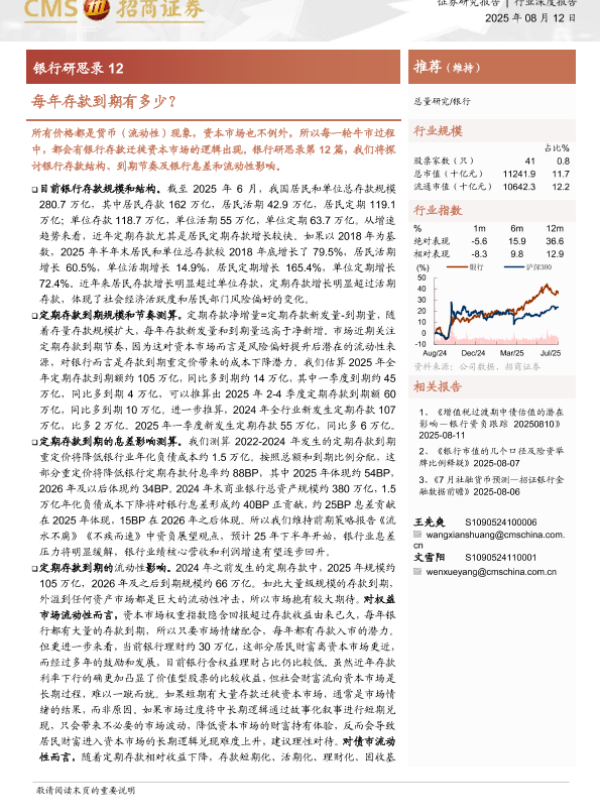【海通证券】【202508】银行业研思录12:每年存款到期有多少?-12页 证券期货研究报告