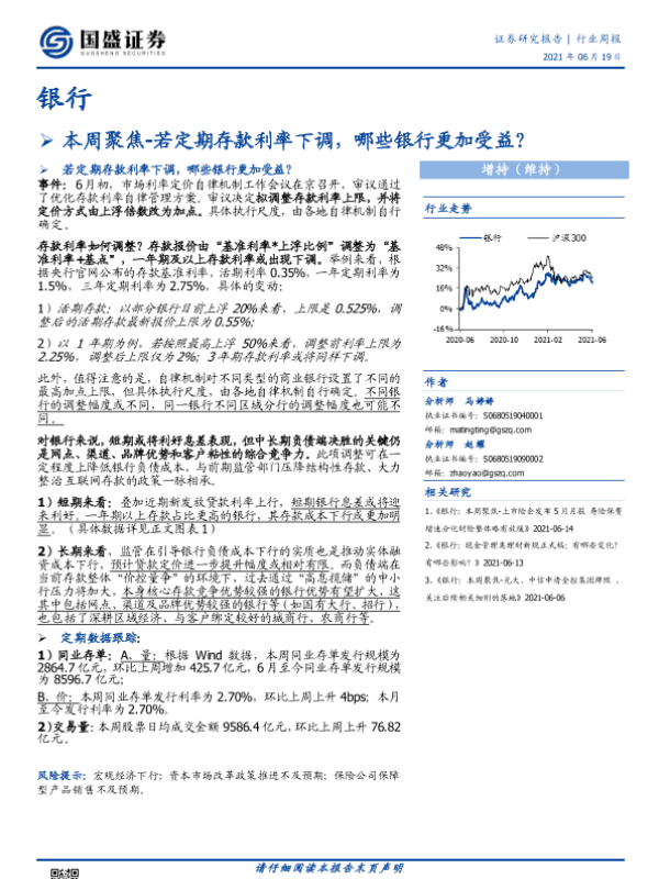 【国盛证券】【20210619】银行本周聚焦:若定期存款利率下调,哪些银行更加受益?-11页 行业研究