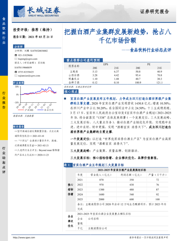【长城证券】【20210321】食品饮料行业动态点评:把握白酒产业集群发展新趋势,抢占八千亿市场份额-3页 行业研究