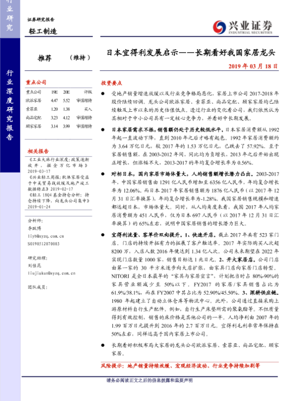 【兴业证券】【20190318】20190318-兴业证券-轻工制造行业深度研究报告:日本宜得利发展启示——长期看好我国家居龙头-34页 行业研究