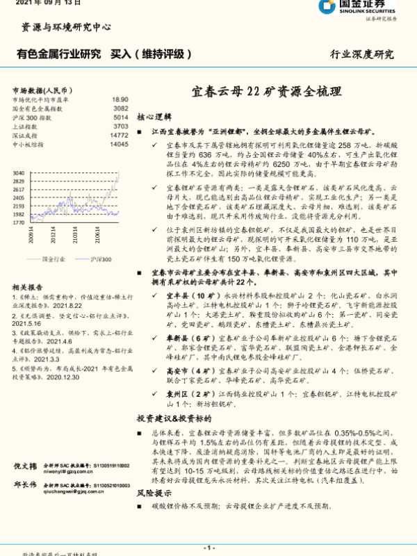 【国金证券】【20210913】有色金属行业:宜春云母22矿资源全梳理-18页 行业研究