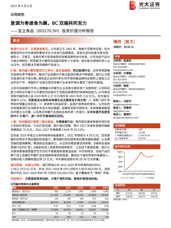 【光大证券】【20220809】复调为骨速食为翼,BC双端共同发力——宝立食品(603170.SH)投资价值分析报告-39页 行业研究