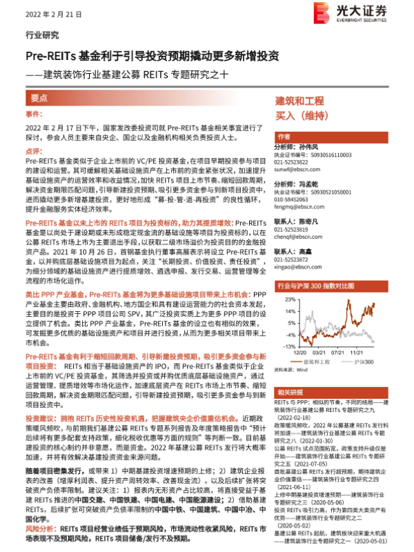 【光大证券】【20220221】建筑装饰行业基建公募REITs专题研究之十:Pre-REITs基金利于引导投资预期撬动更多新增投资-2页 行业研究
