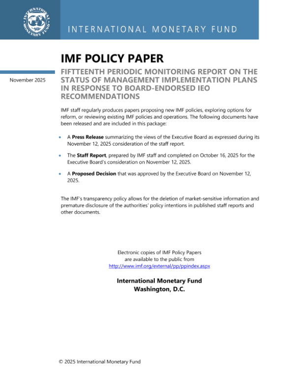 【国际货币基金组织】【202511】FIFTEENTH PERIODIC MONITORING REPORT ON THE STATUS OF MANAGEMENT IMPLEMENTATION PLANS IN RESPONSE TO BOARD-ENDORSED IEO RECOMMENDATIONS-51页 政策文件