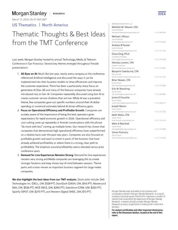 【Morgan Stanley】【20240101】Morgan Stanley-US Thematics Thematic Thoughts & Best Ideas from the TMT Conference-33页 行业研究