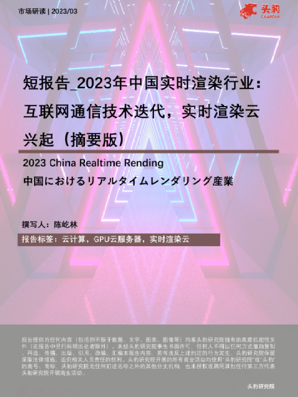 【头豹研究院】【202303】2023年中国实时渲染行业:互联网通信技术迭代,实时渲染云兴起(摘要版)-18页 行业研究
