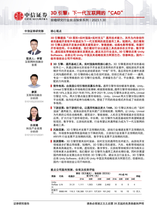【中信证券】【20230130】3D引擎,下一代互联网的“CAD”-36页 行业研究