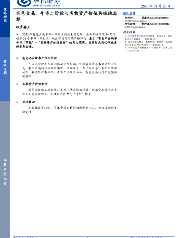 【华福证券】【202601】有色金属:牛市二阶段与实物资产价值共振的选择-13页 证券期货研究报告