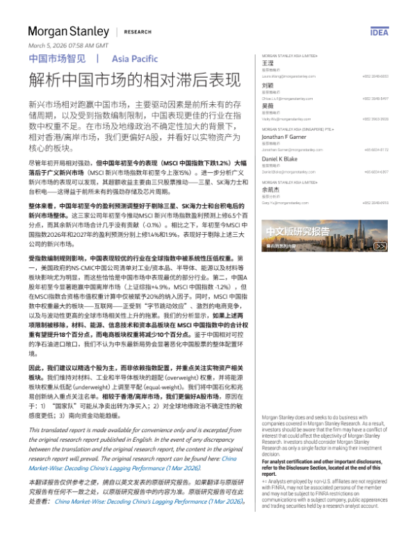 【Morgan Stanley】【202603】中国市场智见L1Asia Pacific 解析中国市场的相对滞后表现-16页 证券期货研究报告
