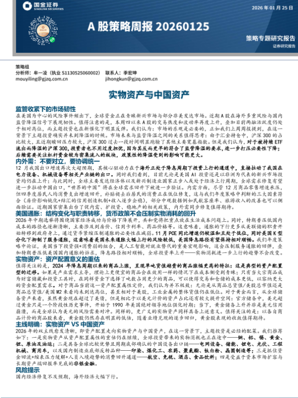 【中信建投证券】【202601】全球大类资产配置和A股相对收益策略:长期看多实物资产,A股小盘成长风格占优-92页 证券期货研究报告