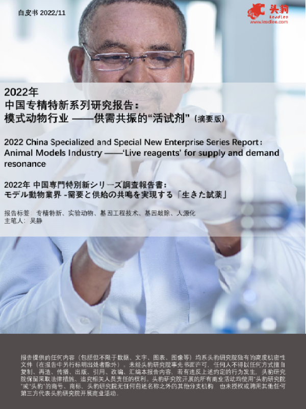 【头豹研究院】【202211】2022年中国专精特新系列研究报告 模式动物行业 ——供需共振的“活试剂”(摘要版)-13页 行业研究