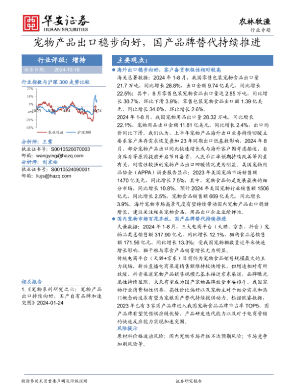 【华安证券】【20241016】2024年10月21日更新-农林牧渔行业专题:宠物产品出口稳步向好国产品牌替代持续推进-20页 行业研究