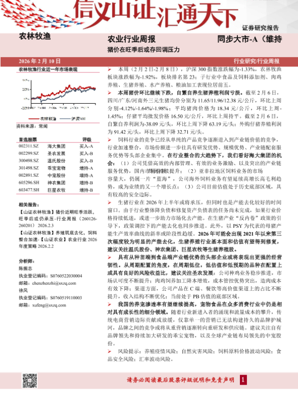 【山西证券】【202602】农林牧渔农业行业周报 同步大市-A(维持)-21页 证券期货研究报告