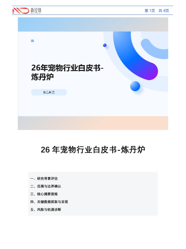 【炼丹炉(杭州知衣科技有限公司)】【2026】26年宠物行业白皮书-炼丹炉-4页 白皮书
